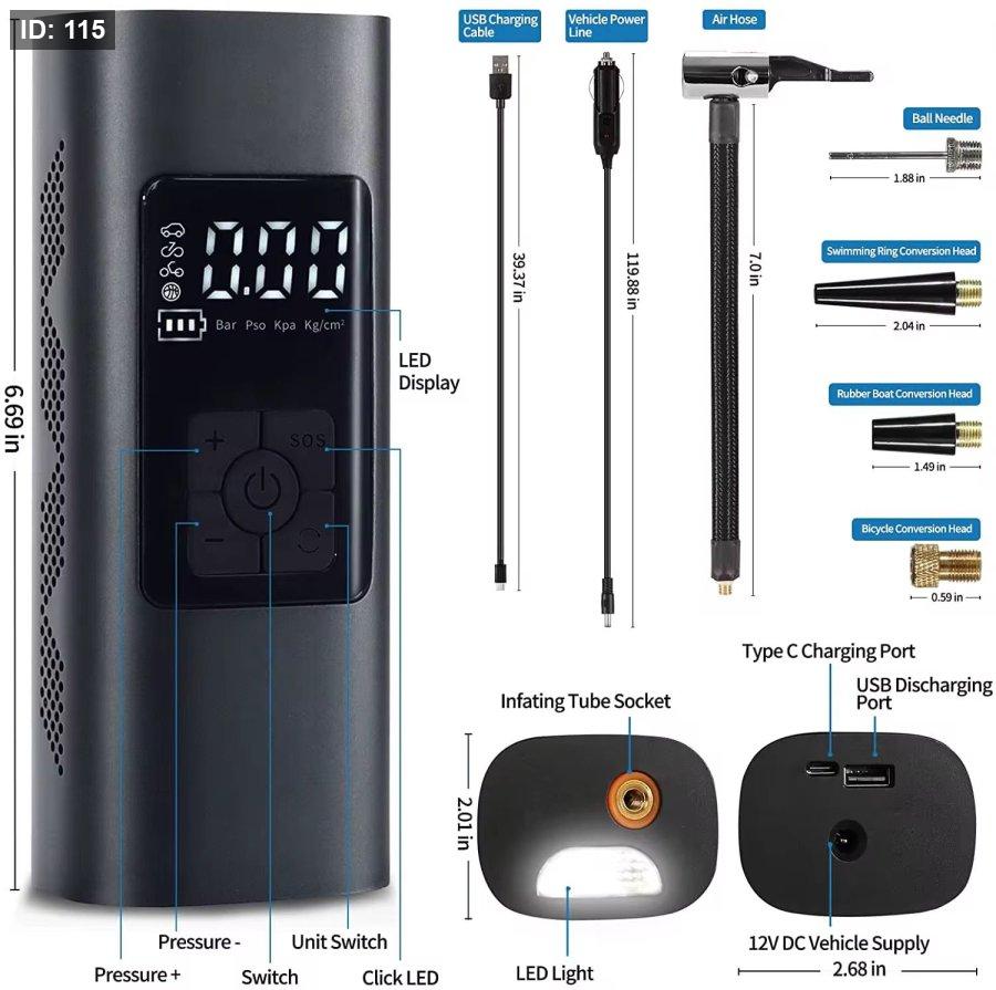 - منفاخ يعمل عن طريق الشاحن أو من خلال قداحة السيارة.
