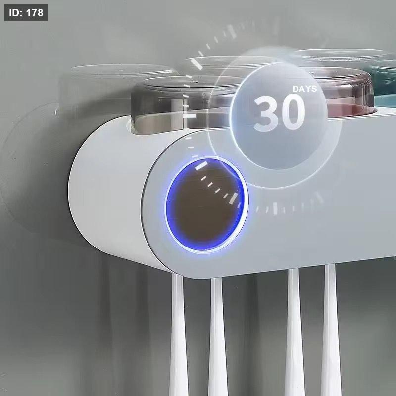 - سعة تنظيمية كبيرة: يمكنه حمل ما يصل إلى 6 فرش أسنان في وقت واحد (يدوية وكهربائية) مع توفير مساحة علوية لتنظيم أدوات العناية اليومية.