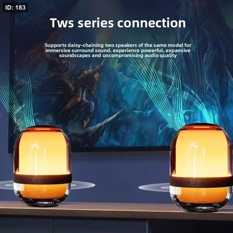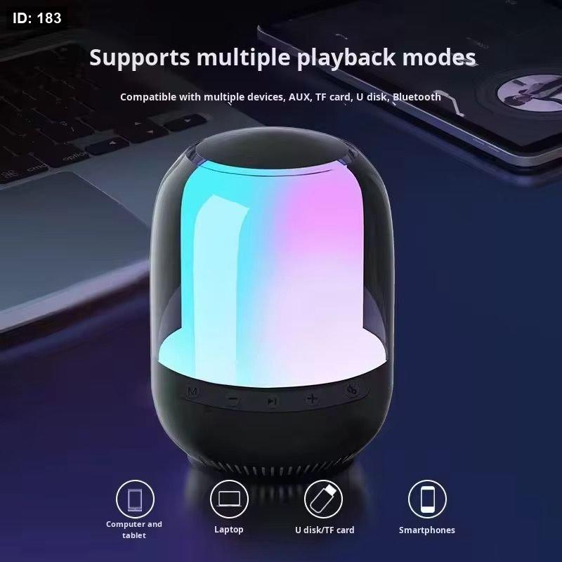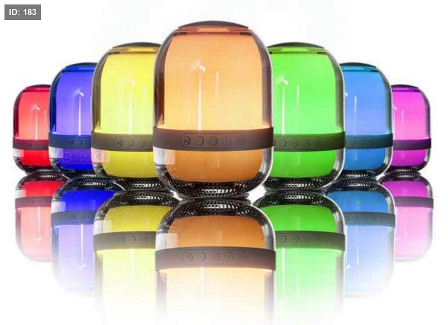 - إضاءة RGB بزاوية 360 درجة: يتميز السبيكر بإضاءة ملونة خلابة تغطي كامل جسم الجهاز، مع إمكانية التبديل بين عدة ألوان (أبيض، أحمر، أصفر، أزرق، أخضر، سماوي، أرجواني).