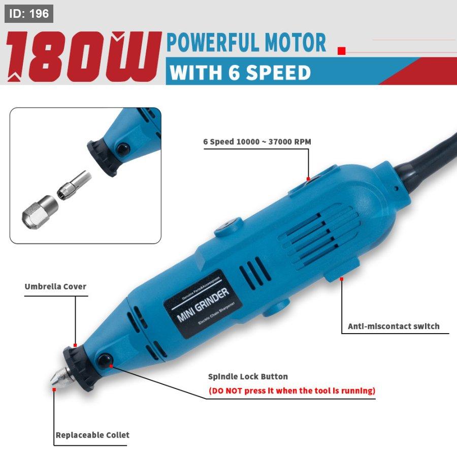 - القوة والسرعة: محرك كهربائي بقوة 180W يوفر سرعة دوران تتراوح بين 10,000 إلى 37,000 دورة في الدقيقة.