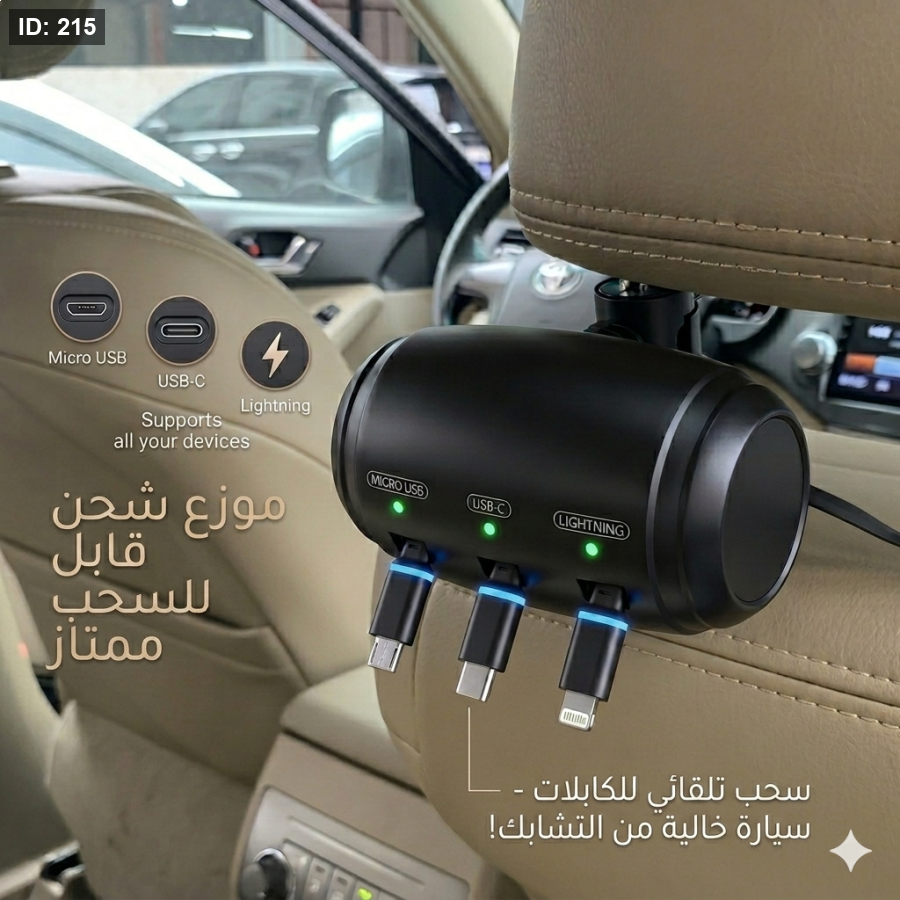 - تصميم منظم وأنيق: يتميز بنظام سحب تلقائي للكابلات، مما يحافظ على ترتيب السيارة ويمنع تشابك الأسلاك المزعج.