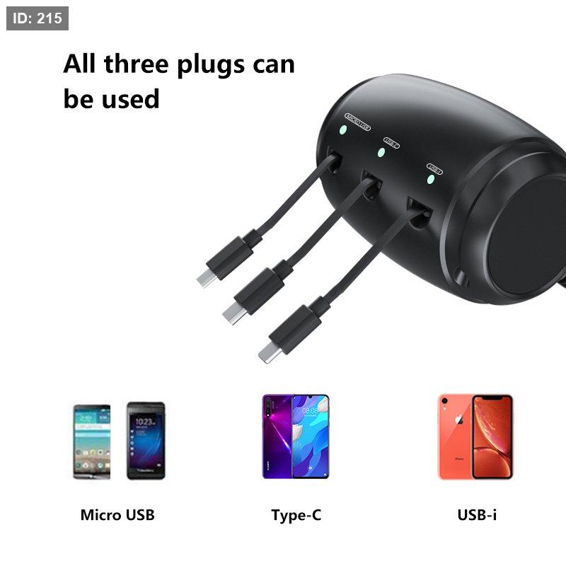 - توافق شامل: يأتي مع 3 رؤوس شحن مختلفة (Micro USB، USB-C، Lightning) ليدعم جميع أنواع الهواتف والأجهزة اللوحية (آيفون وأندرويد).